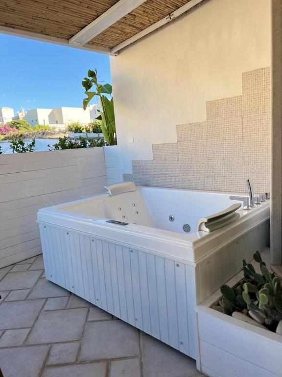 Gli spazi all'aperto, con vista sulle antiche mura del centro storico, permettono di godere della brezza marina.
