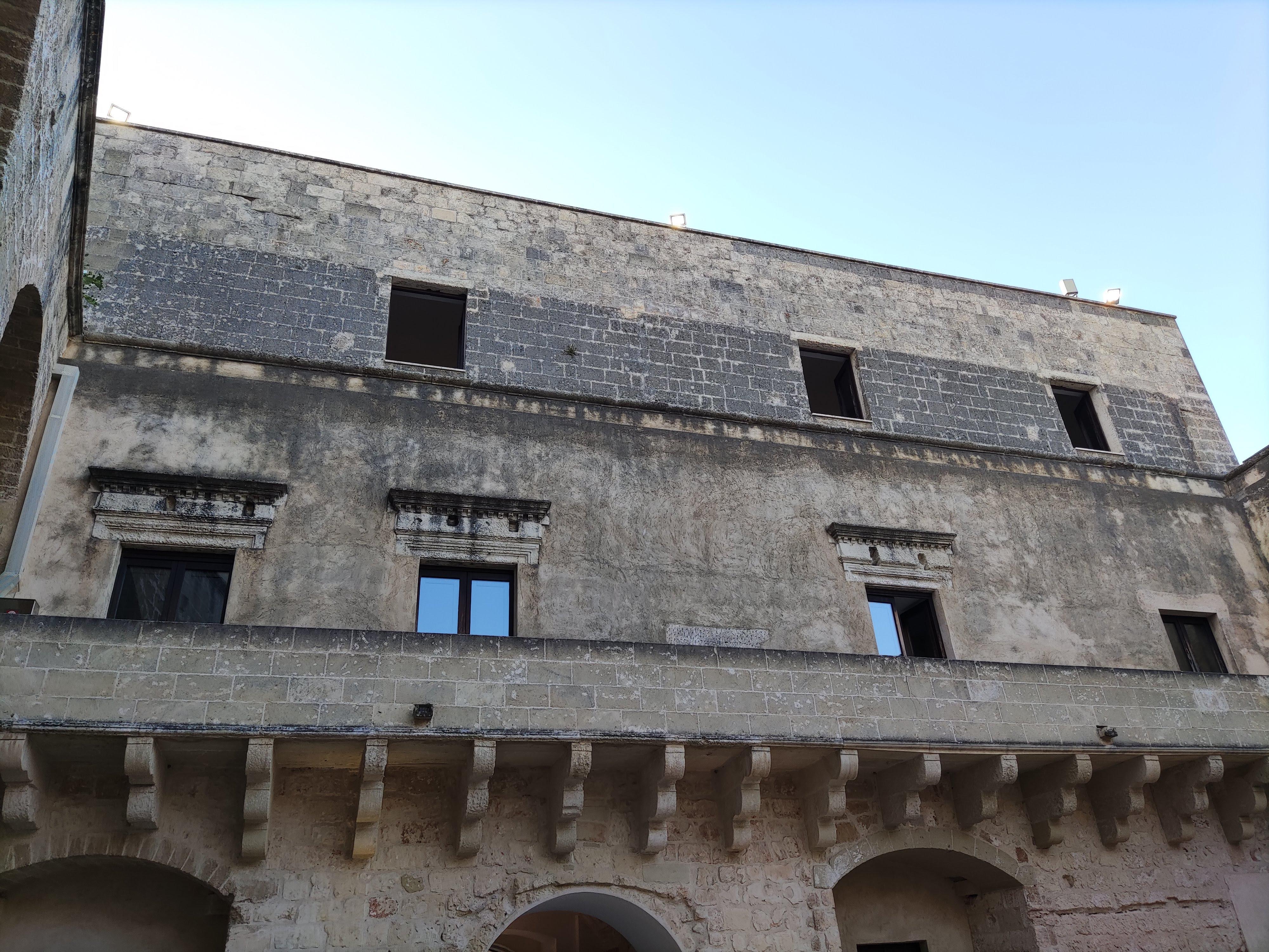 Un corridoio stretto immette direttamente nell'atrio del piano terra. Attraversandolo si nota l'ispessimento della facciata realizzato agli inizi del '500.